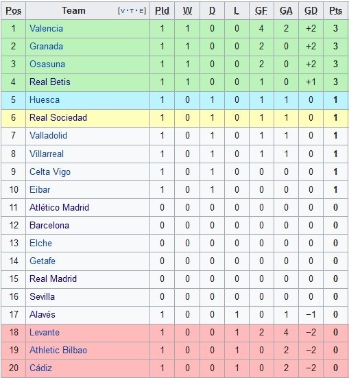 Dari hasil pertandingan di atas, Valencia untuk sementara memuncaki klasemen Liga Spanyol 2020/2021 diikuti Granada, Osasuna, dan Real Betis di posisi 2, 3, dan 4. Keempat tim tersebut memiliki perolehan poin yang sama.